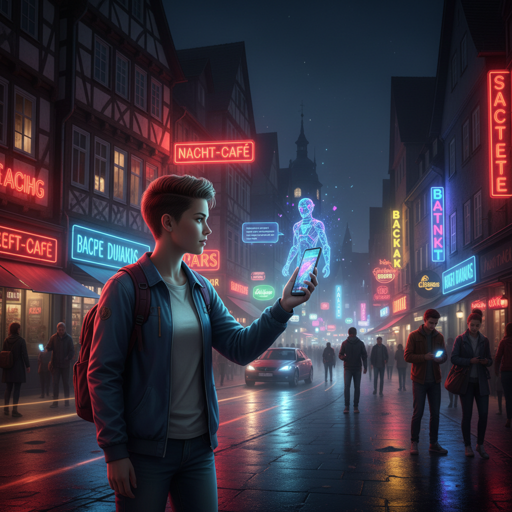 Eine Szene urbaner Einsamkeit, in der virtuelle Freundinnen an Relevanz gewinnen.